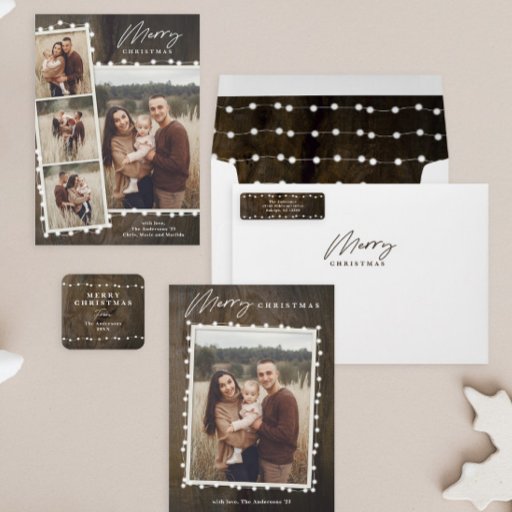 Rustic Christmas Lights Photo Collage Holiday CardDesigned by Stacey Meacham
