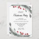 Beautiful rustic Christmas party invitations to set the scene of your winter party celebrations, featuring pinecones, red berries and winter greenery.