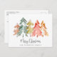 Rustic Christmas Pine Trees Watercolor Holiday Postcard