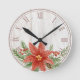 Rustic Christmas Poinsettia Botanical Round Clock