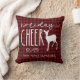 Rustic Christmas Red Buffalo Plaid Throw Pillow - with hand lettered text that reads "holiday Cheer" with a deer and personalised with your family name. A perfect addition to your country Christmas decor. Pillow is part of a collection.