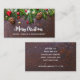 Business cards with a rustic photograph of a brown wooden table with pinecones, pine needles, snow, and Christmas ornaments. Festive and lovely.