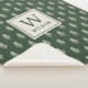 Custom-designed monogram blanket for the holiday season featuring hand drawn style pine tree with family name monogram design.