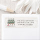 Add rustic charm to your holiday mail with this cosy return address label featuring three watercolor Christmas trees in soft burlap pots. Set against a whitewashed wood background and accented with pastel ornaments and script “Merry Christmas” greeting, this design brings warmth and farmhouse elegance to every envelope. Customise with your family name and address for the perfect finishing touch.