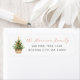 Simple rustic address label features watercolor Christmas pine tree in a basket. Paired with modern and script typography