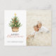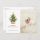 Simple rustic greeting holiday postcard features watercolor Christmas pine tree in a basket. Paired with modern and script typography and your favorite photo.