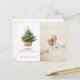 Simple rustic greeting holiday postcard features watercolor Christmas pine tree in a basket. Paired with modern and script typography and your favorite photo.