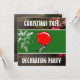 Feel free to personalize this cute mouse, rustic Christmas Tree Decorating Party invitation design- A gray cartoon mouse is trying his best to carry a red shiny Christmas ornament. With a green background and traditional silver bells trimmed with pine boughs. Top and bottom border is holiday photo of rustic barn wood with country Christmas pine wreath decorated with pine cones and red beads and bow. In classic Christmas colors of green, red, and silver look. Reads 'Christmas Tree Decorating Party' in snow topped white lettering on front. Ready to be personalized on back with your holiday party information on coordinating rustic holiday wood look background. This Christmas mouse party invitation is especially cute for those who have mice for pets. There are different invitation styles and sizes, too. Elegant Christmas Tree Trimming Party invitation for all ages.