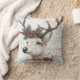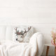 This festive throw pillow features a rustic illustration of a reindeer with a pine and red berry wreath on its antlers. The background has a vintage, textured look with handwritten script, and "Merry Christmas" is displayed in bold red text. Perfect for adding a cosy holiday touch to your Christmas season.