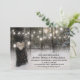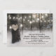 Winter wonderland wedding invitations featuring gorgeous snow covered woodlands, a carved heart in a tree with your initials, string twinkle lights, and a modern wedding template.