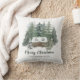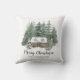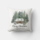 Add a personalised rustic woodland touch to your holiday home decor with this Merry Christmas pillow, featuring a cosy winter cabin nestled in the snowy pine forest. Please see the collection for more matching products.