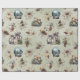 A Rustic Christmas Designed Wrapping Paper With Pinecones, Snow globes, And Candles On A Pastel Green