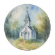This serene countryside scene captures a quaint white chapel nestled at the end of a winding dirt path, surrounded by blooming wildflowers and softly swaying grasses. Rendered in a delicate watercolor style with painterly splashes and gentle light, the composition evokes peace, nostalgia, and quiet faith. The wildflower meadow—full of bluebells, daisies, and soft greens—creates a dreamy, almost ethereal foreground that leads the viewer’s eye toward the charming steepled church under a calm blue sky. Perfect for evoking a sense of retreat and reflection, this design works beautifully as seasonal decor, especially for spring and Easter themes. It pairs well in cozy cottagecore spaces or country-inspired settings, bringing warmth and spiritual calm to any room. The golden cross atop the steeple and gothic-style arched doorway add vintage architectural charm while maintaining a harmonious balance with the natural surroundings. This is an inviting visual retreat into simplicity, faith, and nature. AI generated artwork.