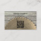 This business card front features a rustic circular saw blade with and a distressed wood background with name and title. A placeholder QR code is on the front that you replace with yours. Use the QR code link to send customers to your website, photographs of your work, reviews or other location. The business details are on the back. Personalise the template details, remove any text or click customise to select a font style, size, and colour to prefer. This business card design may work well for wood restoration, carpentry, construction or maybe your business.