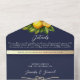 Capture the essence of rustic elegance with our navy blue and yellow citrus lemon fruit wedding all-in-one invitation. The classic navy blue background adorned with cheerful yellow citrus fruits adds a touch of brightness to your special day. At the back, your guests will find a lovely photo of the couple, accompanied by a website and QR code for convenient RSVP. It's the perfect blend of sophistication and charm, inviting your loved ones to share in the joy of your wedding celebration!