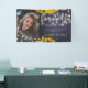 Rustic floral elegant congratulations for grad announcement or party banner featuring sunflowers bouquets, dark navy chalkboard and strings of twinkle lights, and a faux gold chic typography script.+++++++++ Easy to personalize with your picture, name, school, and class.