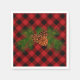 Rustic classic red plaid, green pine cone napkin