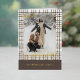 This holiday greeting card stands out with its elegant and unique design. It features a timeless "Happy Holidays" greeting printed in real gold foil, customisable to your preference, on a neutral, natural earth colours plaid pattern design. The front offers space for your family name, photo, and custom seasonal greeting, while the inside is perfect for adding a personalised seasonal message or poem. It's a stylish way to send your holiday wishes.