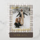This holiday card stands out with its elegant and unique design. It features a timeless "Happy Holidays" greeting printed in real gold foil, customisable to your preference, on a neutral, natural earth colours plaid pattern design. The front offers space for your family name, photo, and custom season greeting, while the back is perfect for adding a personalised seasonal message or poem. It's a stylish way to send your holiday wishes.