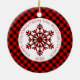 Rustic Classy Red Black Tartan Checks Snowflakes Ceramic Ornament