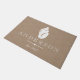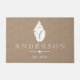 Rustic coastal style white seashell silhouette in the centre. The background has a faux burlap print and personalised family name text. This doormat is elegant, rustic, and beautiful and would make a great impression on your house guests as they are welcomed to your home!