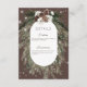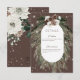 This design features a rustic green pine and pinecone bouquet on a cocoa background with white flowers. It is accented with a white sparkle overlay to illustrate the magic of the beautiful winter holidays. Perfect for a Christmas or winter wedding. This card is part of the Rustic Cocoa Pine Winter Sparkle Wedding Suite created by Simply Farmhouse Press.