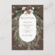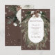 This design features a rustic green pine and pinecone bouquet on a cocoa background with white flowers. It is accented with a white sparkle overlay to illustrate the magic of the beautiful winter holidays. Perfect for a Christmas or winter wedding. This card is part of the Rustic Cocoa Pine Winter Sparkle Wedding Suite created by Simply Farmhouse Press.