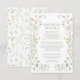 Immerse yourself in contemporary elegance with this details card designed for a romantic bohemian wedding. Adorned with wildflower motifs intertwined in elegant floral wreath. This customisable card allows you to personalise your wedding experience, adding a modern touch with an optional monogram on the back, enhancing the overall sophistication of your rustic summer or fall celebration.