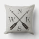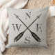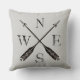 Rustic and Simple Compass Pillow with worn letters and arrows in black on light grey background. Design is printed on both front and back. Look for this design on other products too from Simple Living.