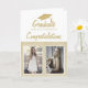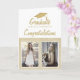 Rustic Congratulations Graduate 2 Photo Collage Card. Beige rustic background, golden graduation cap and text. Personalise with your photos and the name of the graduate on the front and the message inside the card or erase it.