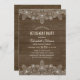 Rustic Corporate Retirement Party Country Wood Lace Pearls Invitations. Feature a creative lace decorated with pearls on a dark country background. Perfect for rustic country or any other retirement parties. Designed by http://superdazzle.com