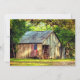 This wedding invitation features a rustic barn with a patriotic American flag and the word Love in a charming wooded country setting.