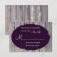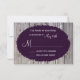 This rustic wedding invitation is perfect for any country wedding. It features a rustic barn wood background. The lettering is on top of a purple oval that has tattered edges. Perfect for a country or barn wedding. Just add your RSVP date to the card.