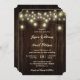 Rustic country wedding invitation featuring string lights against a barn wood background. Perfect card design for inviting your guests to your country-themed wedding party. Matching items available.