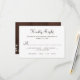Kindly reply calligraphy script rustic country traditional wedding RSVP card with brown barn wood like background on the backside.