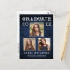 Rustic country themed 3 photo graduation announcement postcards. This design features rustic style distressed typography reading "Graduate", the year of graduation and of course the grads name. The photos highlight the card and are accented by a beep navy blue colored wood plank background. The back of the card offers personalized text spaces for information about your graduation or can be cleared if you wish to hand write a message. Perfect for the high school, college and university grad students and seniors.