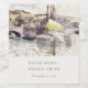 Rustic Country Bridge Riverside Watercolor Wedding Wine Label