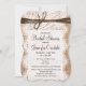 Here's a unique rustic bridal shower invitation with a burlap and lace printed design with a printed twine bow at the top. The burlap, lace, and twine are all just printed designs. This is a flat invitation. The rustic country burlap print design is also on the back. These are perfect for brides who will be having a rustic country wedding or barn wedding. These are designed to match these rustic country wedding invitations: