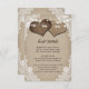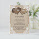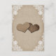 Provide your guests with important details with this rustic country wedding enclosure card featuring burlap hearts on a distressed burlap background adorned with elegant white floral lace and string lights. Two burlap hearts and floral lace at the back. Matching items available.