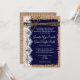 This rustic wedding invitation is perfect for any country western wedding. It features a rustic country printed burlap background on both sides of the invitation. The invitation lettering is printed on an tattered navy blue rectangle with a printed lace embellishment on the side. The top has a printed twine embellishment. The burlap, lace, and twine are just printed designs. It is not actual burlap fabric or actual lace or twine.