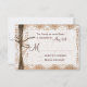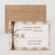 It features a rustic printed burlap background with printed lace and a ribbon of twine on the side. Perfect for a country or barn wedding. Just add your RSVP date to the card. The burlap, twine, and lace are just printed designs. It is not actual burlap fabric, lace, or twine.