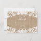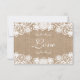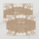 Beautiful digitally created and part of a set, are these rustic country western RSVP wedding cards. Unique design with white lace on burlap background. Just add your own wedding details into the template area above right, or if you need additional changes, click the “Customise It” button above. Perfect for any country western wedding theme! Please note these invitations are flat, printed invitations - the lace and burlap are simply a high quality image of our design. Matching save-the-date, RSVP, postage stamps, and thank you cards are available.