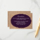 This rustic wedding burlap and purple accommodations card is perfect for any country wedding. It features a rustic printed burlap background. The lettering is on top of a purple oval that has tattered edges. Perfect for a country or barn wedding. The burlap is just a printed design. It is not actual burlap fabric. Perfect for the country western couple using burlap and purple in their wedding colours.
