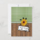Let your friends and family know you've moved to a new residence by sending this country style moving announcement with a rustic wood wainscoting on the bottom and a green gingham pattern on the top and a sign decorated with a bright yellow sunflower that says: We've moved.