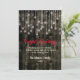 Chic Rustic Country Christmas lights Black greeting card. Rustic christmas winter greeting card featuring wooden and faux glitter Christmas lights background, Personalise the details on these fun rustic country Christmas party invitations for your upcoming celebration.