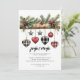 Rustic Country Christmas Party Invitation featuring hanging country hearts and stars on a branch adorned with pine and red berries. Perfect for your family or corporate Christmas Party.