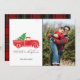 Rustic country truck with Christmas tree photo holiday card. Customise with names and photo. This Christmas card reverses to plaid on the back.