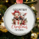 Rustic Country Christmas Wishes Cute Pig Metal Ornament