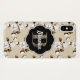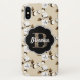 Lovely cotton flowers patterned phone case in neutral beige, white, and black colours. The centre features a badge with your monogram letter and first name in script.