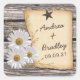 Country and western rustic shasta white daisy flower personalised wedding save the date stickers or envelope seals.These are great stickers to use as envelopes seals or favour tags for your spring, summer, or fall / autumn wedding. They can be purchased in two sizes. These are great wedding stickers if you are having a rustic, western, camping (glamping), outdoor, farm, barn, or country theme. White daisies paired with weathered wood woodgrain background and parchment paper.